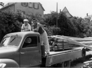 1951 erster LKW-HanomagNutzlast 1,5 t;Transportmittel zuvor: Pferdefuhrwerk für das Stangengerüst