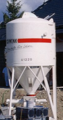 Material für den Aussenputz wird in grossen Mengen im Silo bereit gestellt