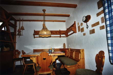 Decke:- Randfries mit Stuckstab farblich abgesetzt - Deckenspiegel: Edelputz als Kratzputzstruktur 1,5 mmWand: Überarbeitung mit Sperrgrund, Putzgrund und Strukturputz (Edelputz als Kratzputzstruktur 3mm)Kachelofen: Altdeutscherputz abgebürstet